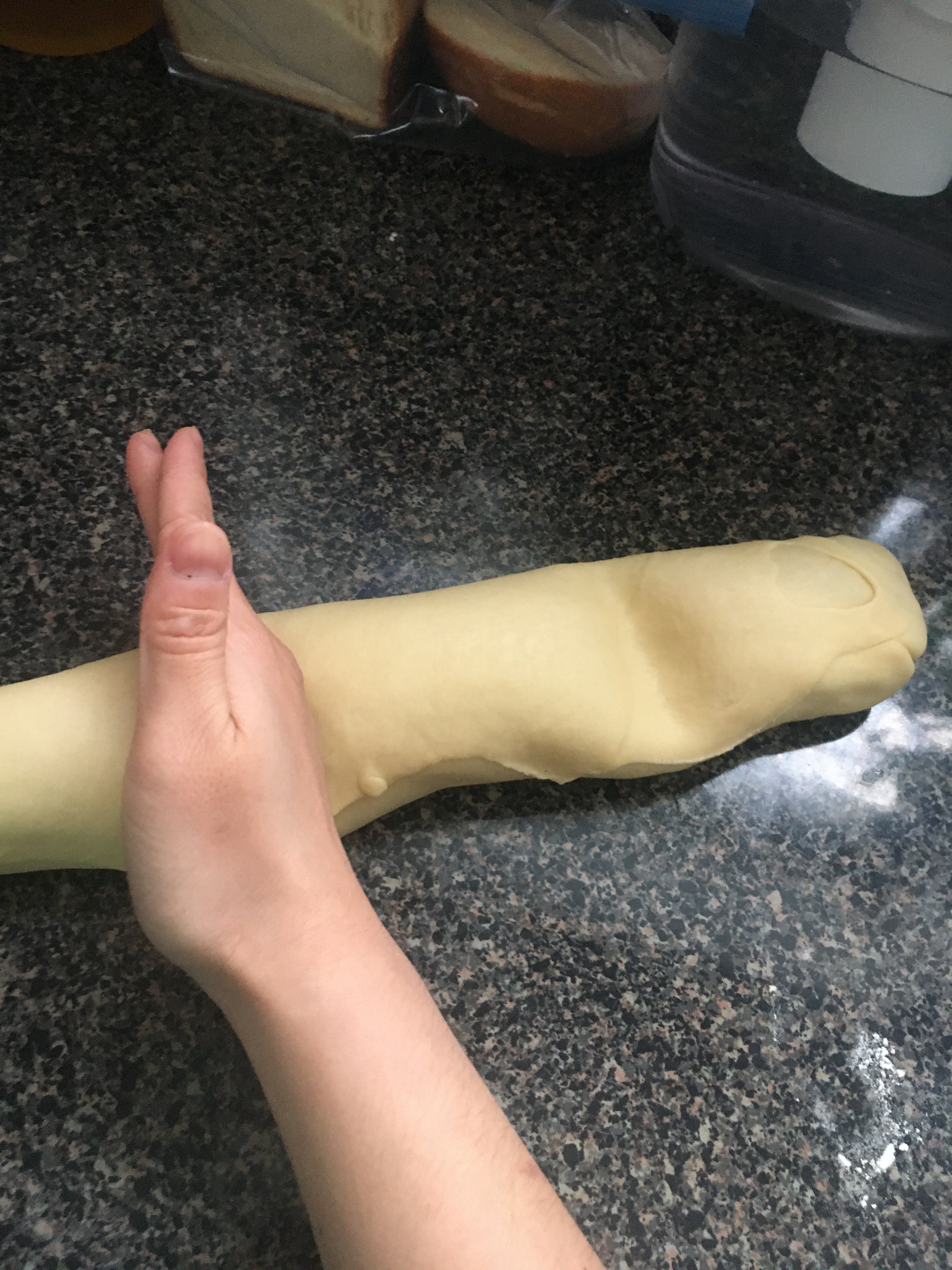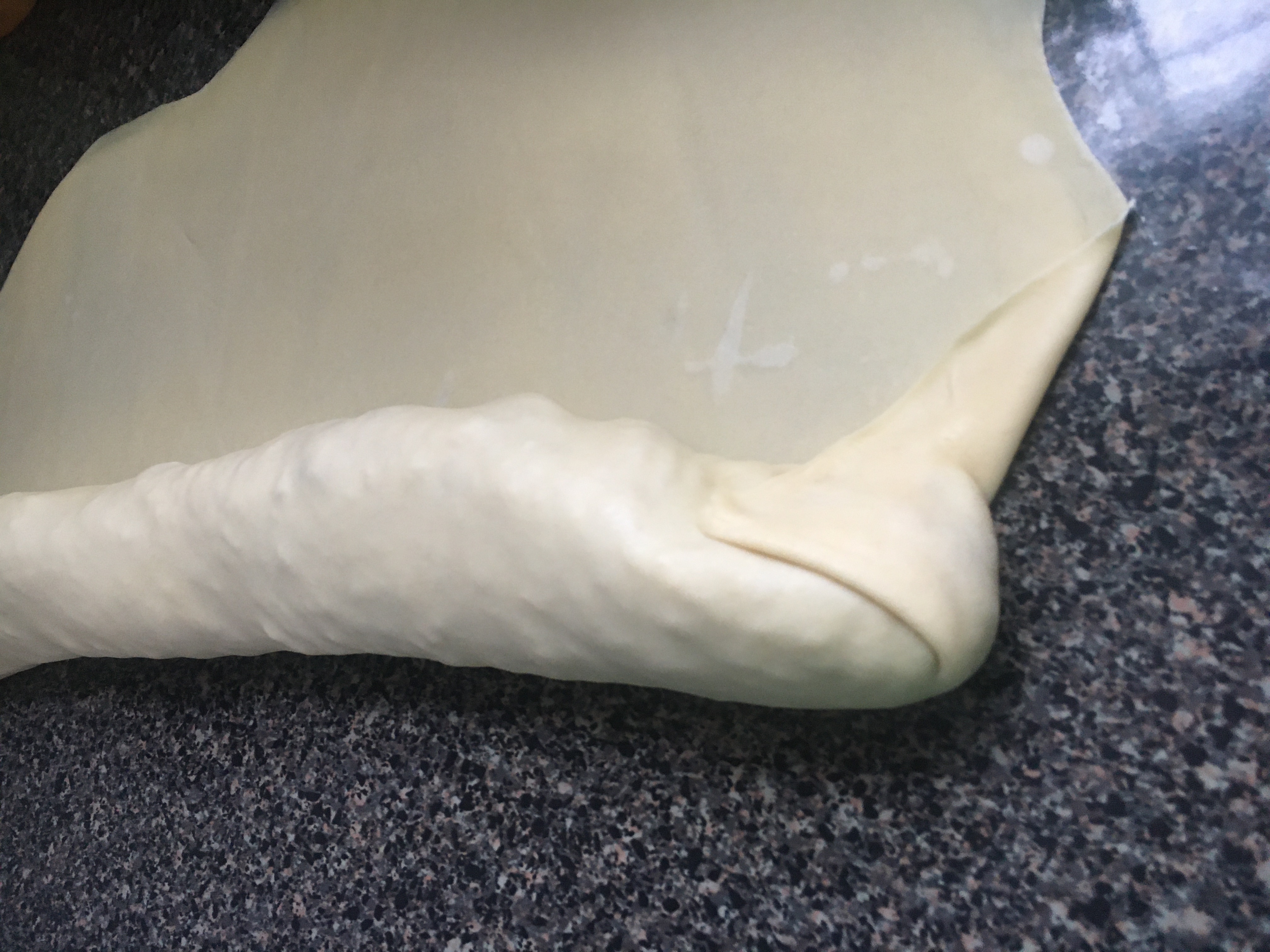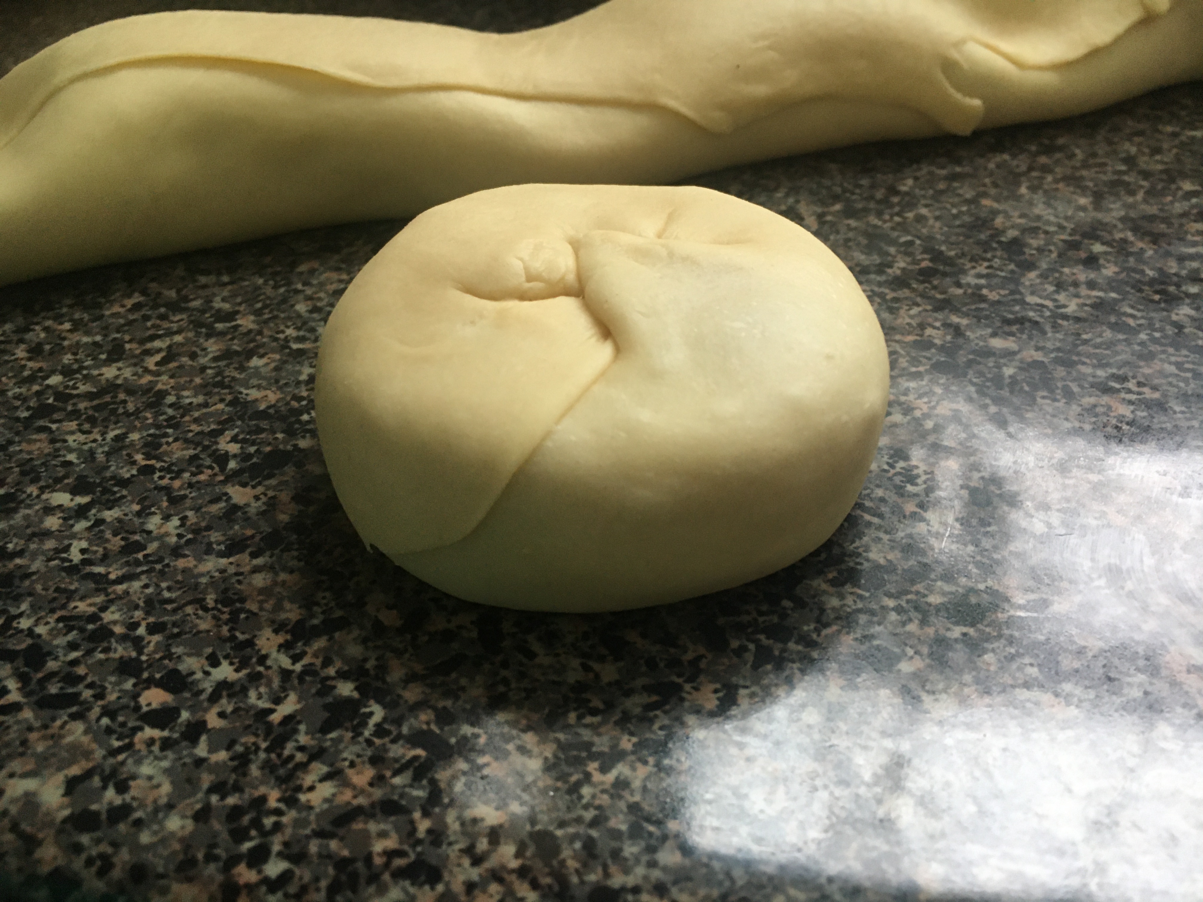- Roll the dough and fold in the sides until it is a log.